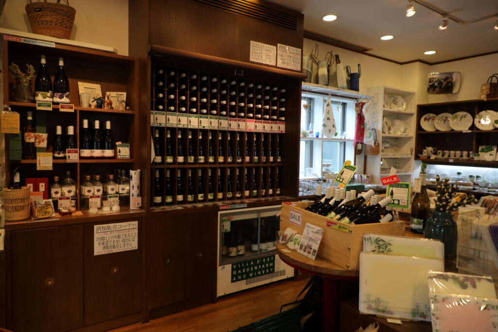 ショップではワイナリーで作られたワインはもちろん、玉村さんの描いたデザインの食器やポストカードも買うことができます。