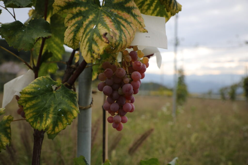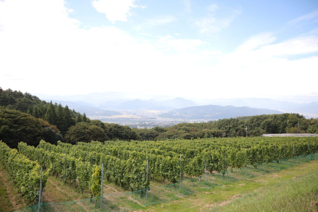 東御市の中でもヴィラデストワイナリーがあるこの辺りは、標高850メートルの丘で南側が斜面となっている場所。晴天率も高く寒暖差が大きいというブドウ栽培に適した環境となっています。