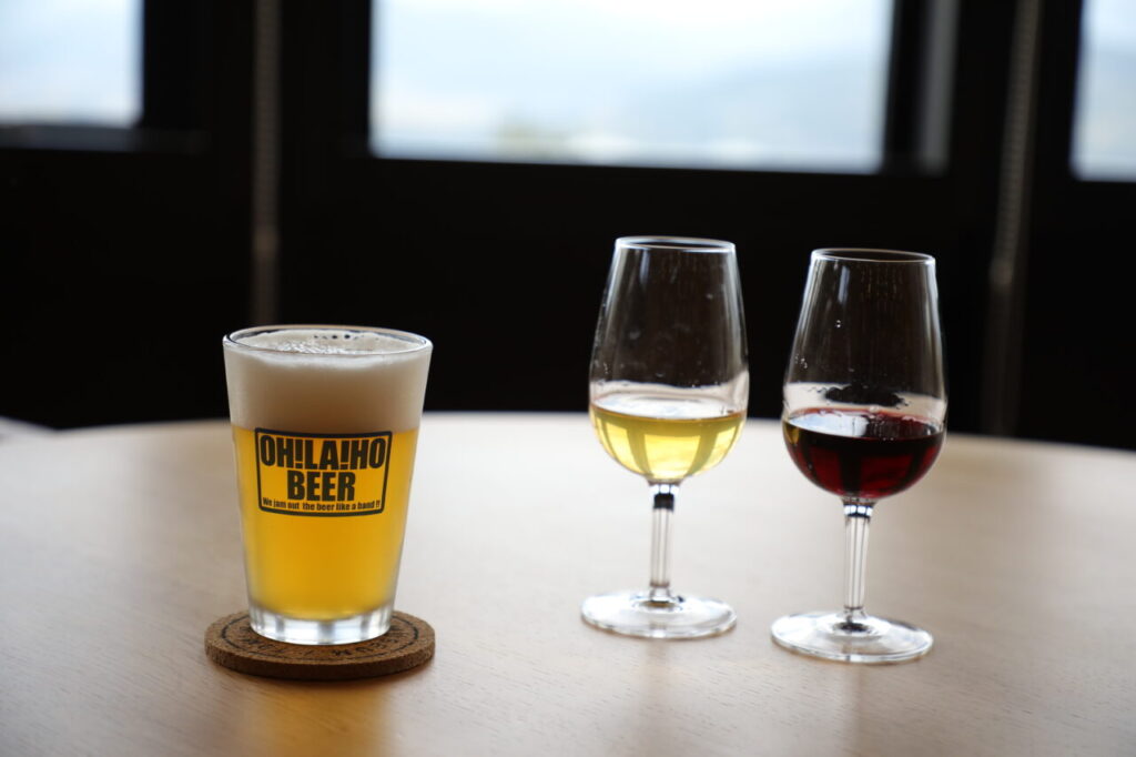 もちろんワインもビールも飲むことができます!お風呂上りに今日一日と東御のワインの歴史を振り返るのも、楽しみのひとつです。