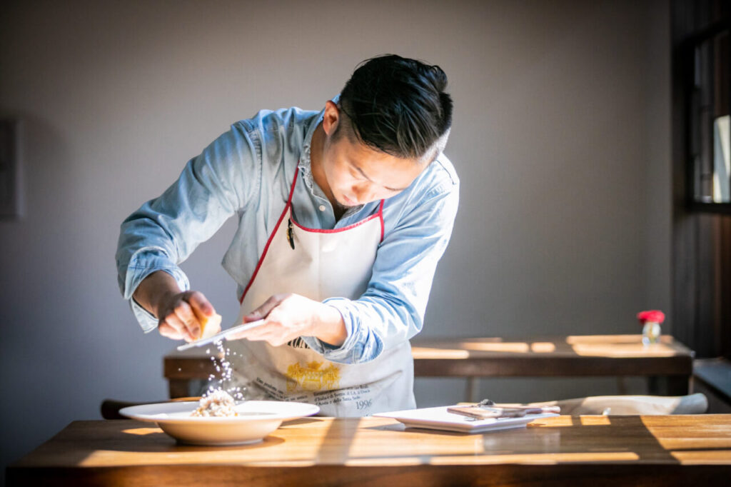 ここでは、坂城葡萄酒醸造のワインや長野県産の食材を中心にした料理を楽しむことができます。シニアソムリエの資格を持つシェフが、ワイナリー周辺の農家から仕入れた旬の野菜や長野県産食材をふんだんに使った料理とワインのマリアージュを提案してくれます。炭火焼きの肉料理や、手打ちパスタ、季節のフルーツを使ったデザートまで、どれも素材の個性が生きる一皿ばかり。ランチは複数のコースから選べ、ドルチェとカフェ付き。グラスワインやボトルワインも豊富で旅の余韻をゆったり味わえます。