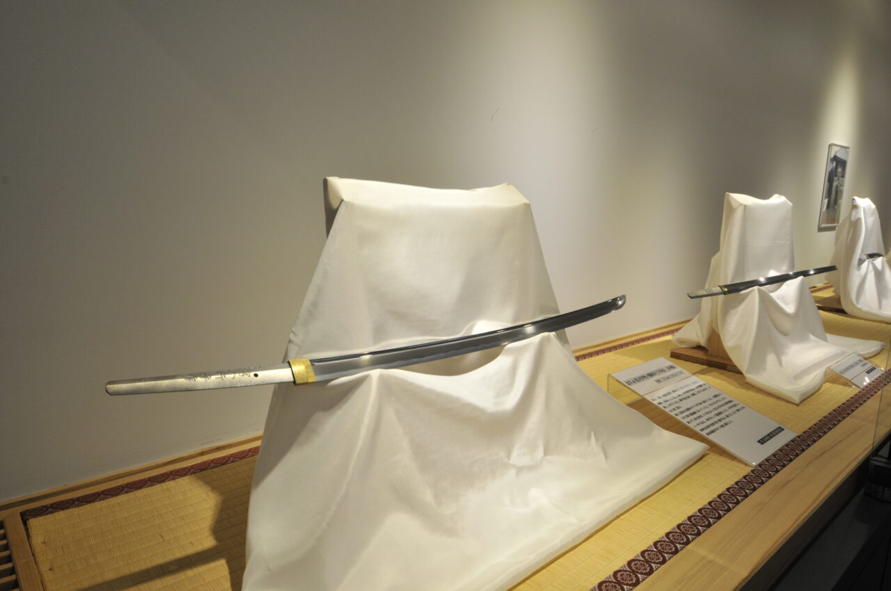 坂城町の旅は、「鉄の展示館」からスタートします。館内に一歩足を踏み入れると、静かな空気の中にずらりと並ぶ日本刀が迎えてくれます。鎌倉時代から現代まで、時代ごとの刀剣を間近で鑑賞することができ、刃文や反りなどその姿から一切の妥協を許さない刀匠のものづくりの精神が伝わってきました。ガラス越しでありながらその存在感は圧倒的。戦いの道具であることを忘れ、その美しさに魅了されてしまいます。