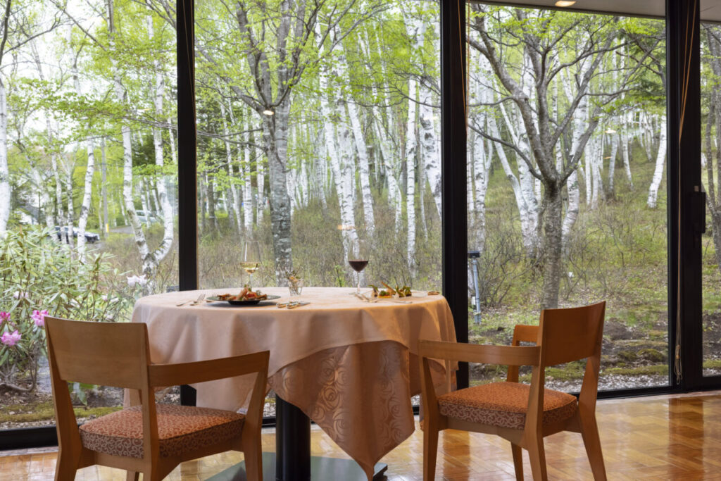 レストランでは、四季の豊かな食材を生かしたフレンチが味わえます。地元・蓼科エリアの山の恵みだけでなく、日本海・太平洋のどちらからも新鮮な食材が届く立地を活かし、季節ごとのおすすめ料理を一皿ずつ丁寧に仕立てています。五感が満たされる料理の数々は、旅の余韻をゆっくりと味わうのにぴったりです。