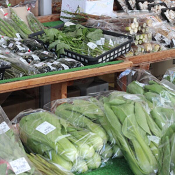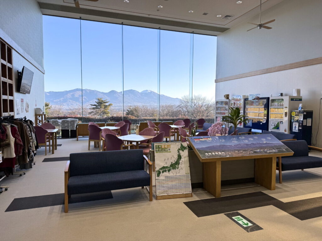 旅の最後は、道の駅女神の里たてしなにある「蓼科農ん喜村(たてしなのんきむら)」へ立ち寄りましょう。地元の新鮮な季節野菜や果物をはじめ、立科ならではの加工品や特産品が並ぶ直売所と家庭味の地元食材食堂が併設されています。北に広がる浅間連峰が一望できる田園風景は、高原観光や中山道歴史探索の休憩に最適です。