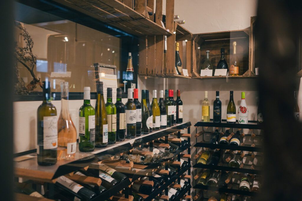 ワインセラーにはセレクトされた自然派ワインが並び、その雰囲気から選ぶ楽しみがあります。自家製パンでは、地元のワイナリーから提供されたワインの搾りかすで天然酵母を起こして作ったパンがあります。店の奥にはカフェコーナーもあって、自家焙煎コーヒーをゆっくりと味わえるので、昼下がりのひと休みを過ごすのもおすすめです。